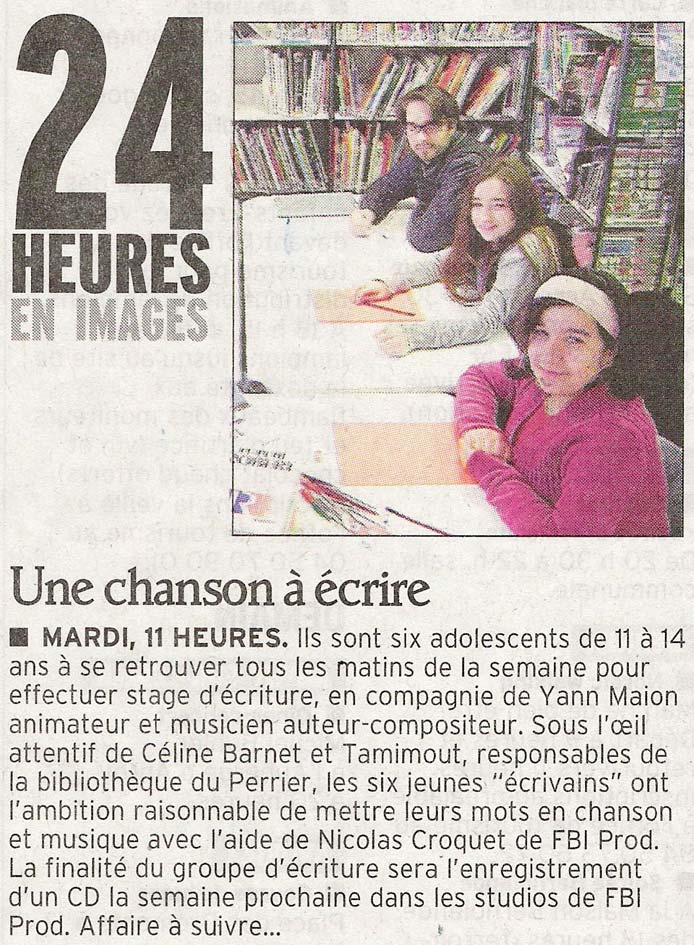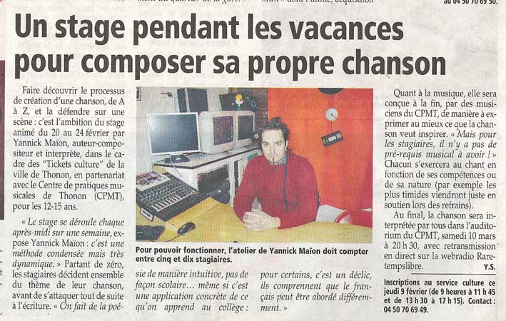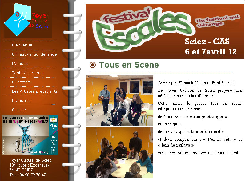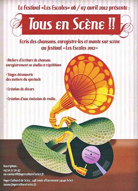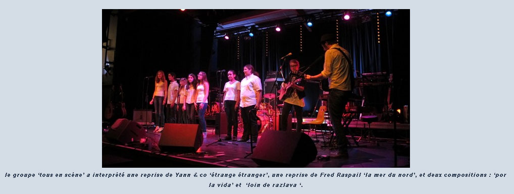 "Tous en scène", atelier chansons du foyer culturel de Sciez. Finalité: Représentation au Festival Escales 2012.