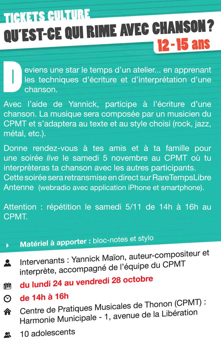 "Tickets culture" ville de Thonon 2011 et 2012:
